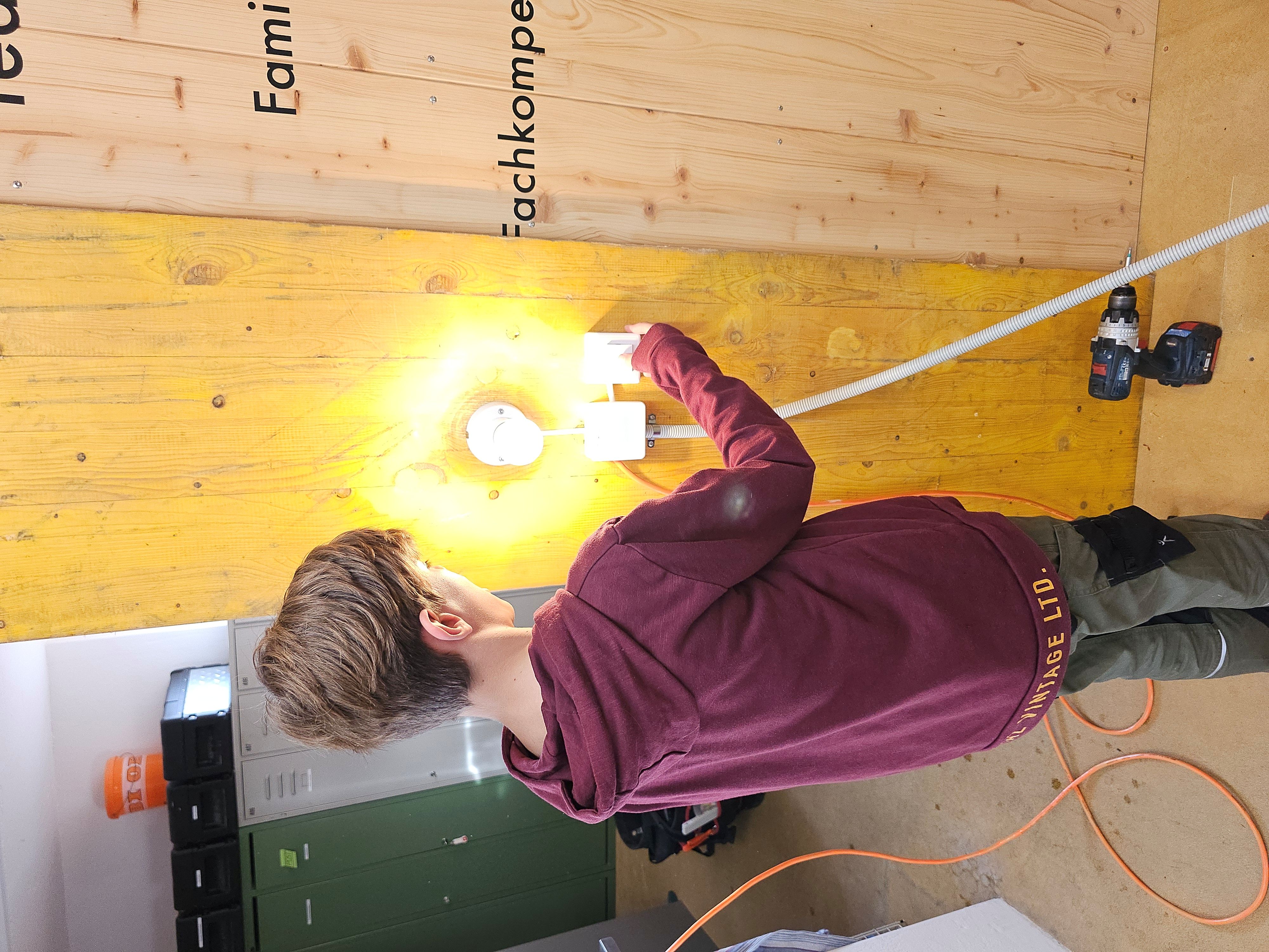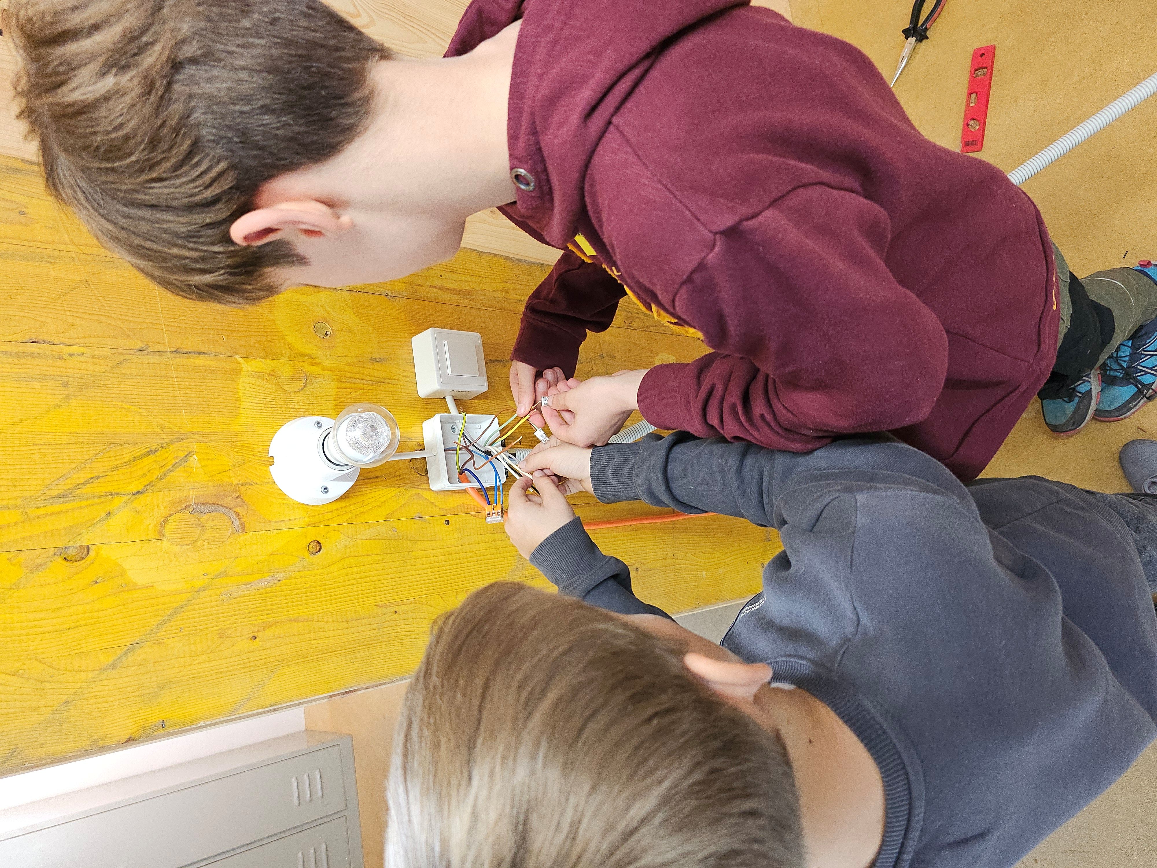 Neben praktischen Arbeiten wie dem Herstellen eines eigenen Verlängerungskabels 🔌 und dem Verkabeln einer kleinen Lichtinstallation 💡 standen auch Baustellenbesuche 🚧 auf dem Programm.